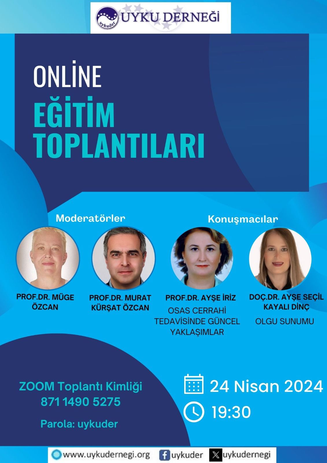 Prof. Dr. Müge ÖZCAN ve Prof. Dr. Murat Kürşat ÖZCAN’ın moderatörlüğünde Prof. Dr. Ayşe İRİZ’in “OSAS Cerrahi Tedavisinde Güncel Yaklaşımlar” başlıklı konuşmasının ve Doç. Dr. Ayşe Seçil KAYALI DİNÇ’in olgu sunumunun olduğu online toplantımız 24 Nisan 2024 Çarşamba günü saat 19:30’da gerçekleşecektir. Siz üyelerimizi toplantımızda görmekten mutluluk duyarız.