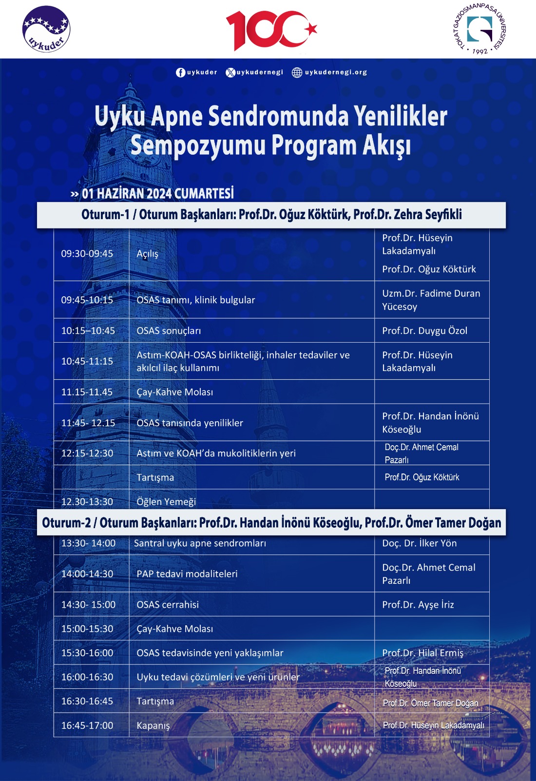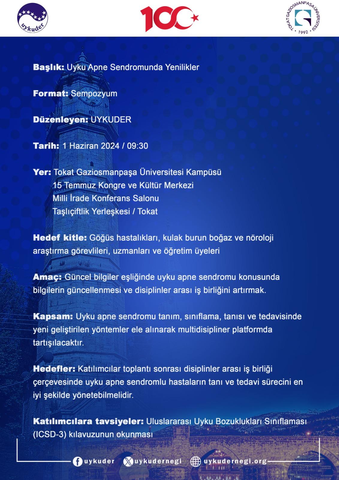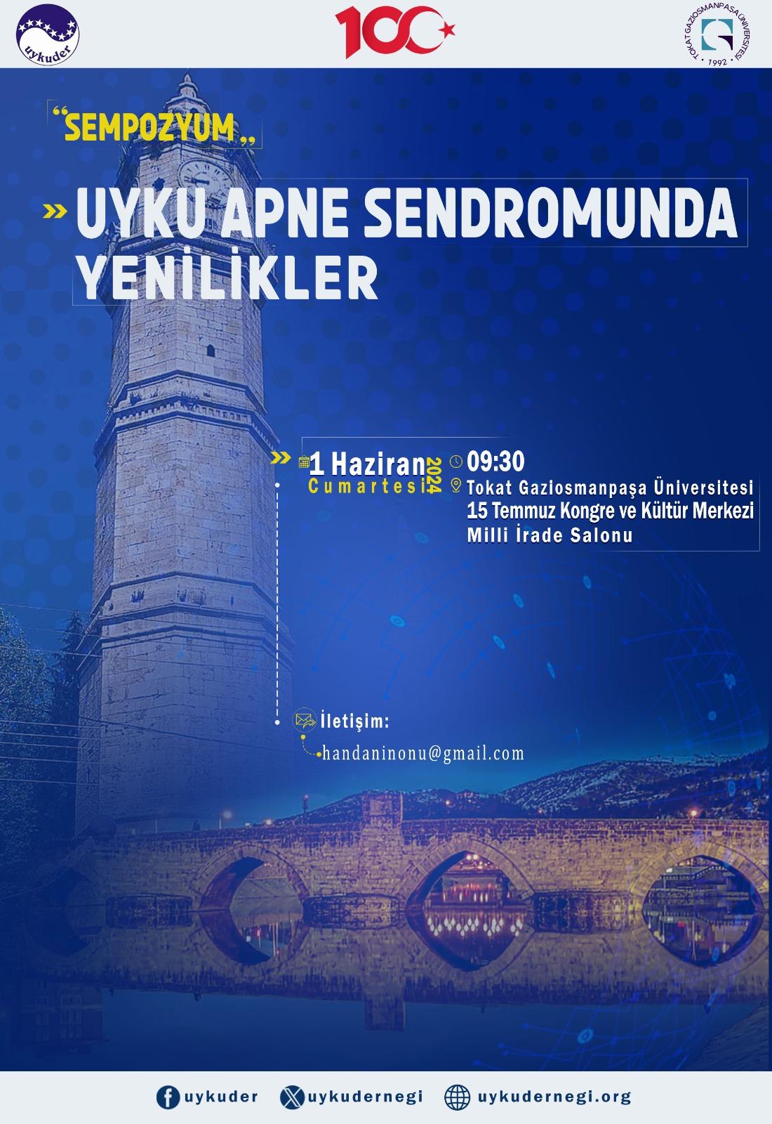Uyku Apne Sendromunda Yenilikler” Sempozyumumuz 1 Haziran 2024 tarihinde Tokat Gaziosmanpaşa Üniversitesi’nde gerçekleşecektir. Kayıtlarımız devam etmektedir.