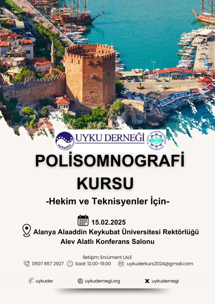 UYKUDER Sertifikalı Polisomnografi Kursu 15.02.2025 tarihinde Alanya Alaaddin Keykubat Üniversitesi, Rektörlük Alev Alatlı Konferans Salonunda yapılacaktır. Bilimsel program önümüzdeki günlerde ilan edilecektir.